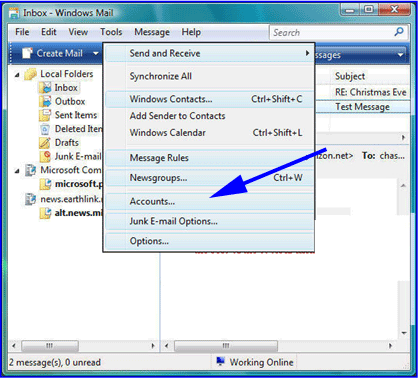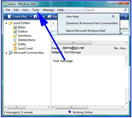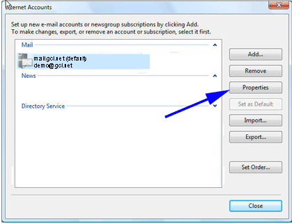 4. Highlight the email account, it may be the default, or labeled gci.net