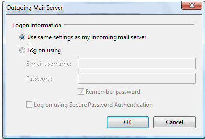 9. Ensure the button is marked for Use same settings as my incoming server.